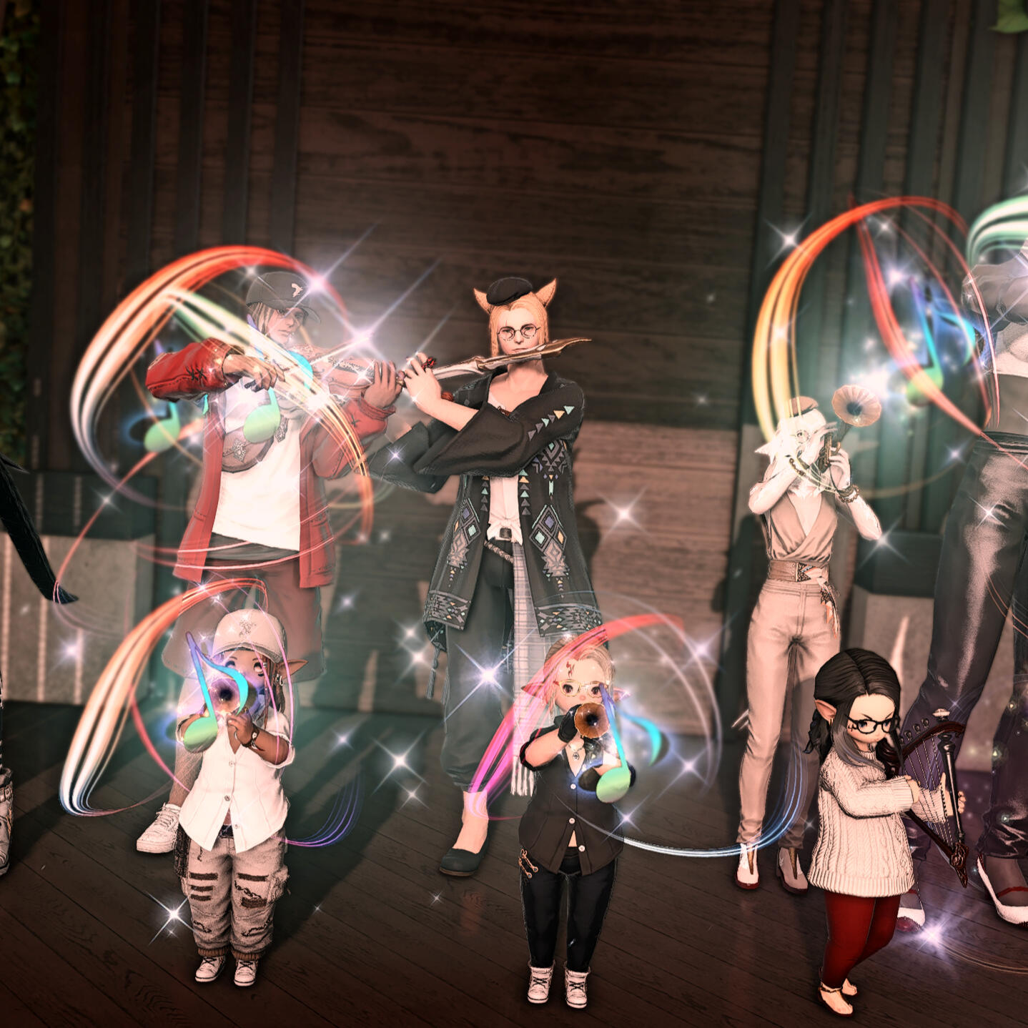 I'm a multibox bard, being able to play any ensemble-size up to octet!I've been playing FFXIV since around just after one of the later patches of ShB, found my start barding as just a solo, and eventually met other friends in-game who enjoyed playing music just as much as I do! We've started our own bard collective "Maximum Doot", each of us with ensembles varying in size. Nowadays, when we're all available, we get together and edit songs for peoples' pleasure, mainly looking for music that we ourselves can't find easily by simply searching for it, to give a unique experience!I also edit on my own from time to time, and have received a lot of good feedback!
